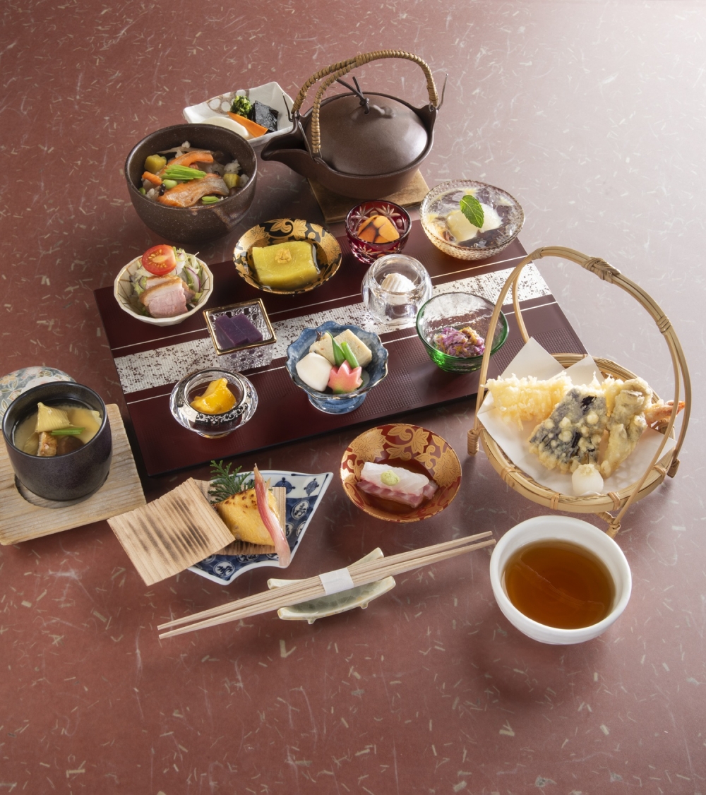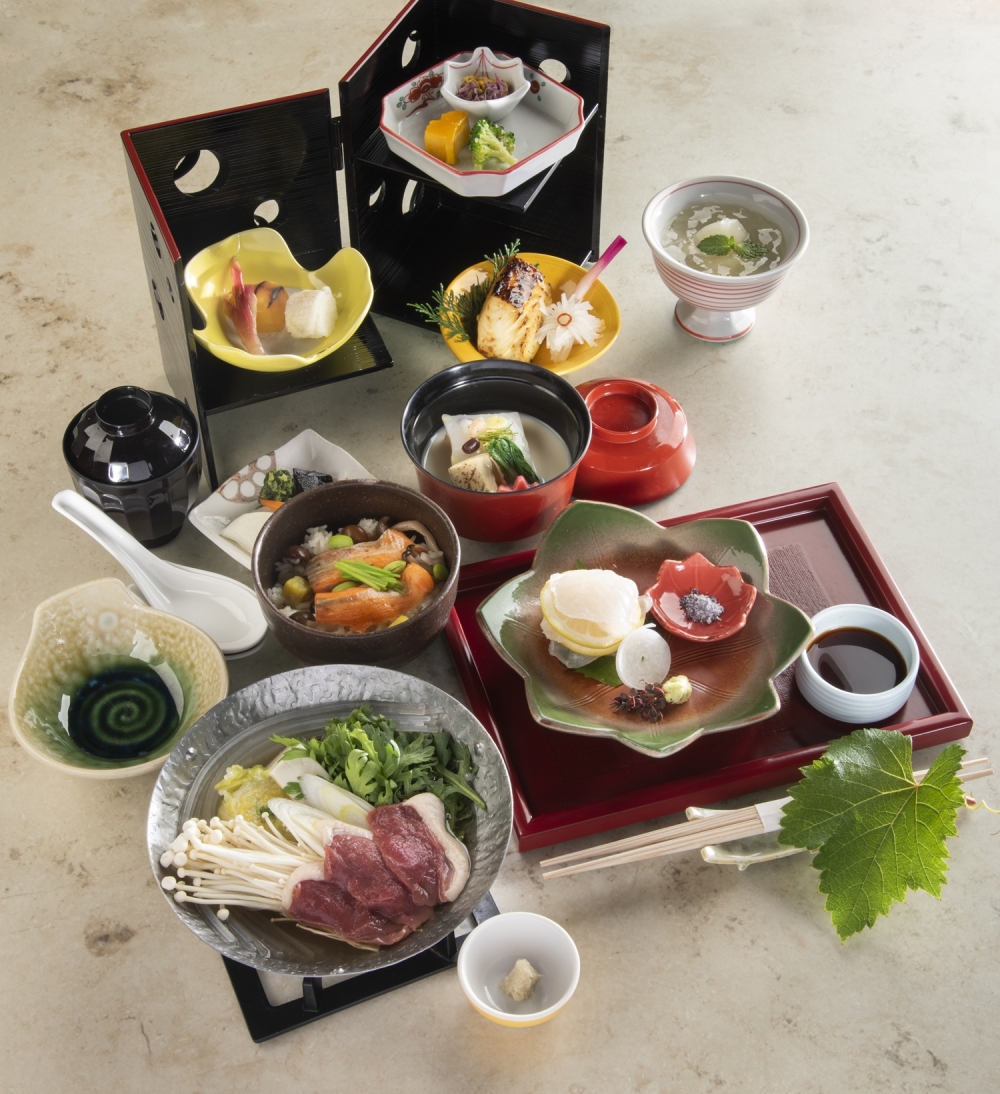 ※※ 1日限定30食 ※※ ・鯛紅葉山造り 煎酒 山葵 ・紅羊羹 ・菊花とんぶり合え ・栗焼目付 ・辛子豆腐 ・銀杏玉子 ・小鯛小袖寿司 ・鴨ロースト サラダ添え ・鰆杉板焼 酢取茗荷 ・萩豆腐 小芋 三度豆 紅葉麩 ・洋梨コンポートワインジュレ ・小茶碗蒸し ・天婦羅 ・鮭秋野菜御飯 出汁茶漬け ・香物 ※ 特別献立につき割引対象外です